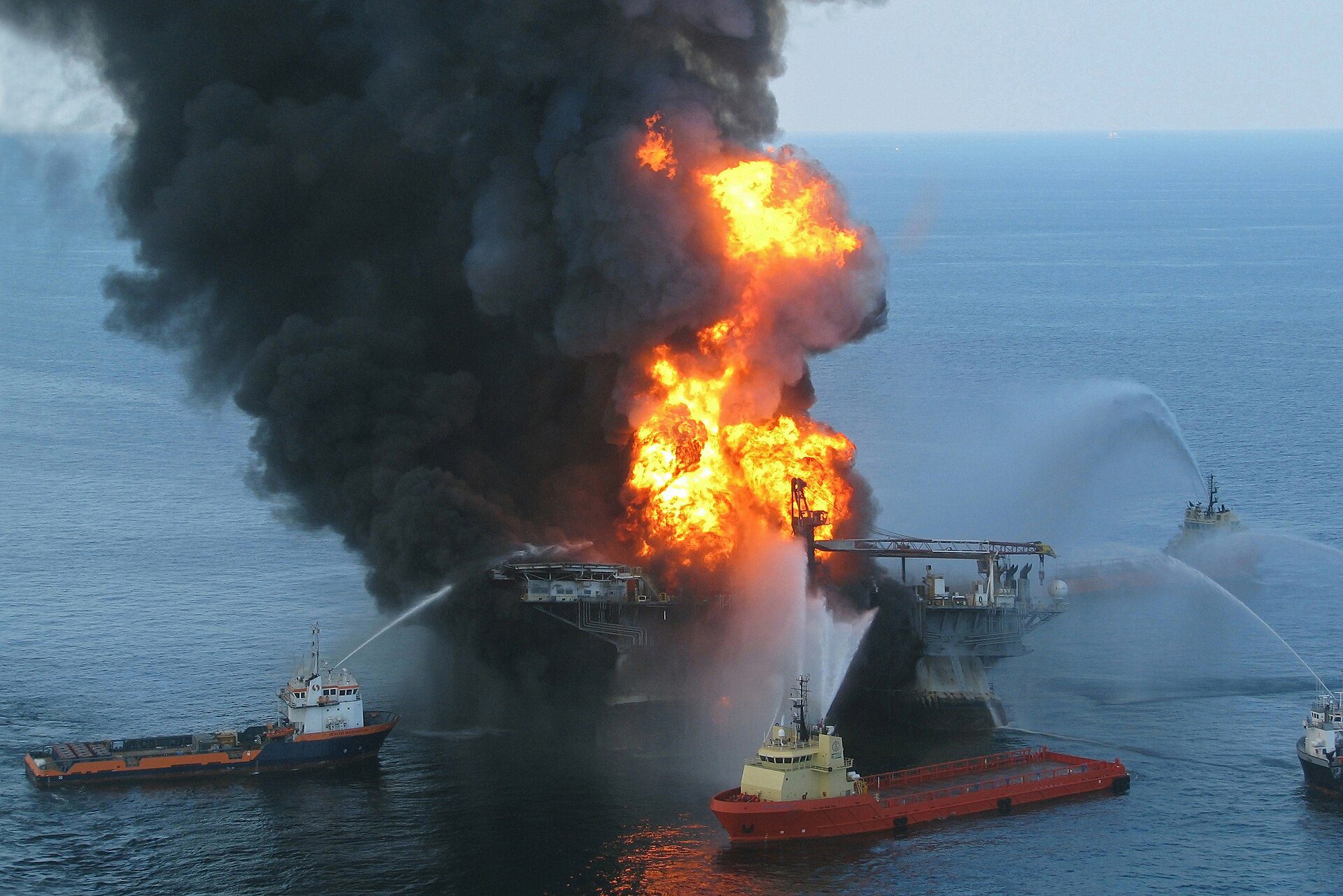Deepwater Horizon offshore drilling unit on fire in 2010